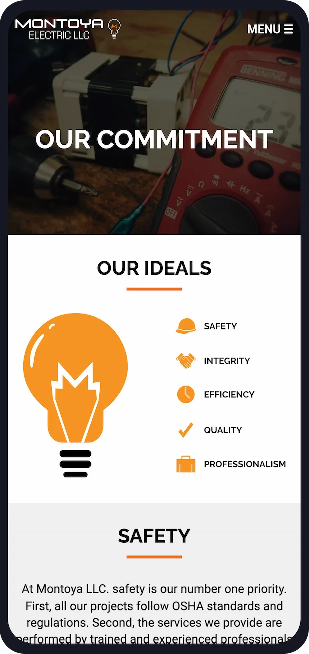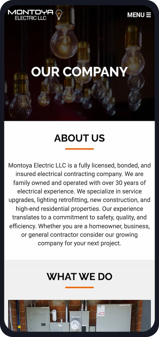 The design I chose to go with for this website focused on the company's services and electrical